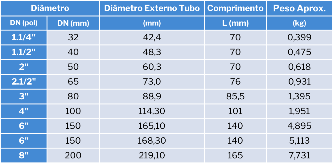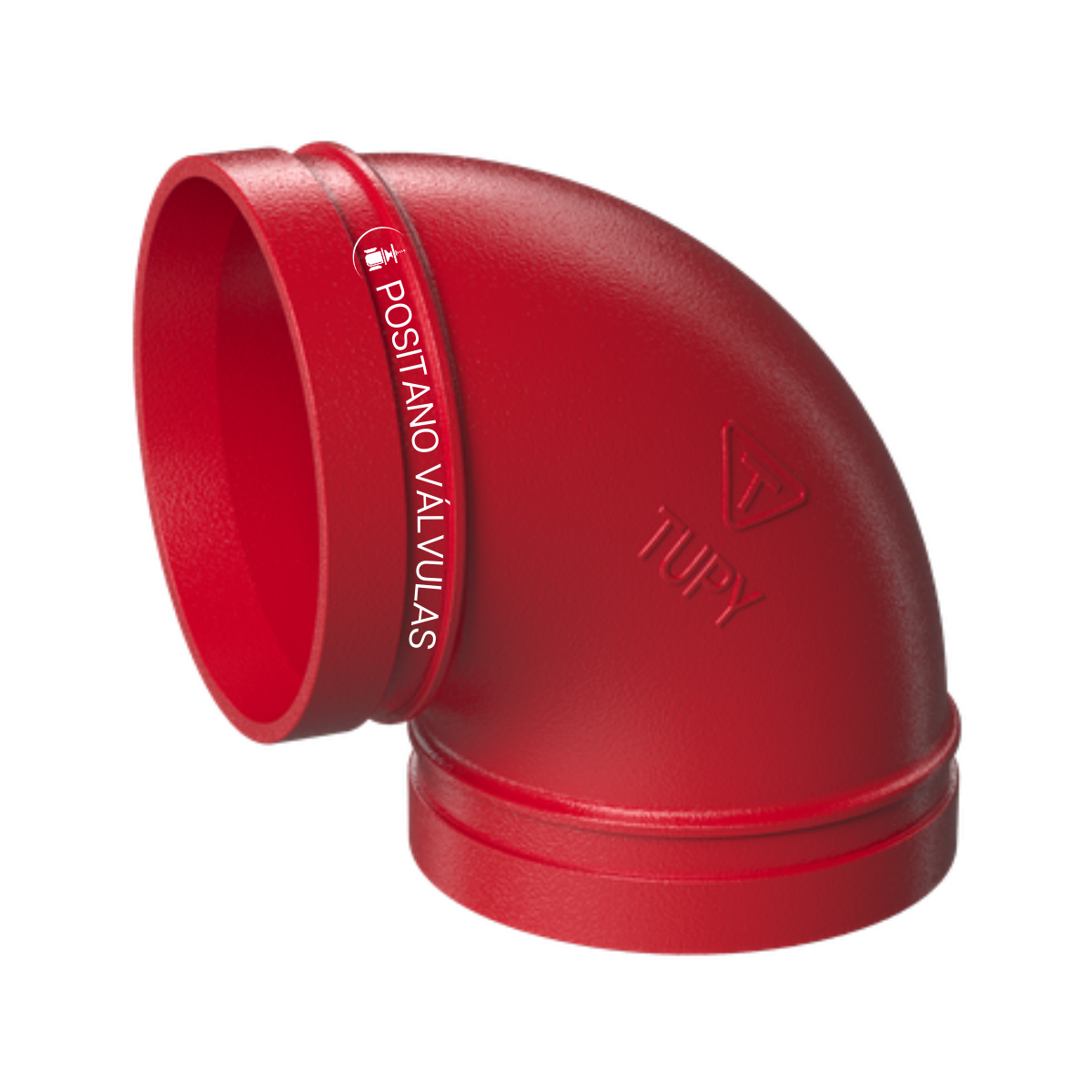 É feito de ferro dúctil, com pintura vermelha epóxi, extremidades ranhuradas disponível em diversas polegadas para conexões que podem variar de acordo com a necessidade do projeto.